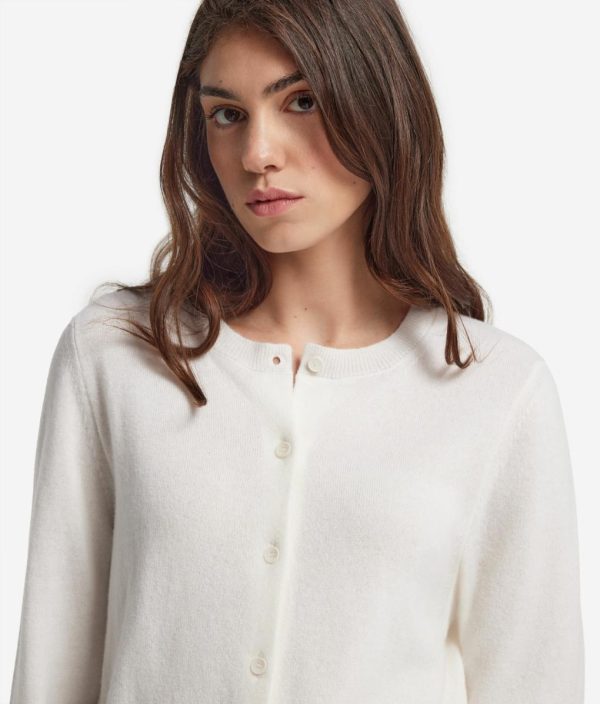 Una raffinata combinazione di classico e contemporaneo percorre lo stile di tutta la collezione Falconeri, l’amore per i materiali pregiati e la cura dei dettagli si esprimono nella scelta di filati iconici come il puro cashmere ultrasoft e nell’equilibrio di forme e volumi. Questo golfino girocollo con bottoni rappresenta un capo chiave nel guardaroba di ogni donna.