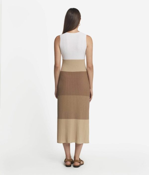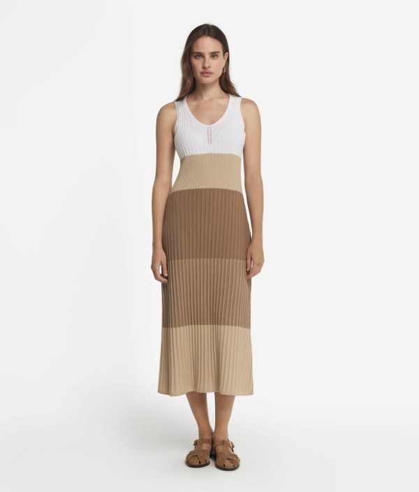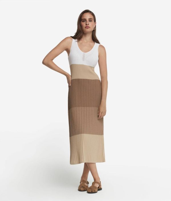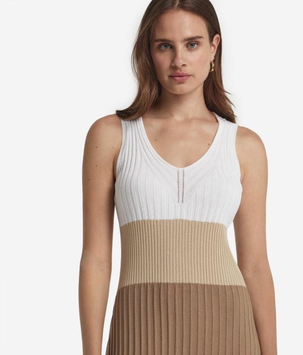 Realizzato in fresco cotone, questo abito avvolge il corpo in un abbraccio leggero e piacevole sulla pelle. La lavorazione a costine, delicate e alternate, crea un gioco di ombre e luci che accarezza la pelle con ogni movimento. Lo scollo a V, elegante e raffinato, aggiunge un tocco di sensualità, mentre la vestibilità slim sottolinea la silhouette con grazia naturale.