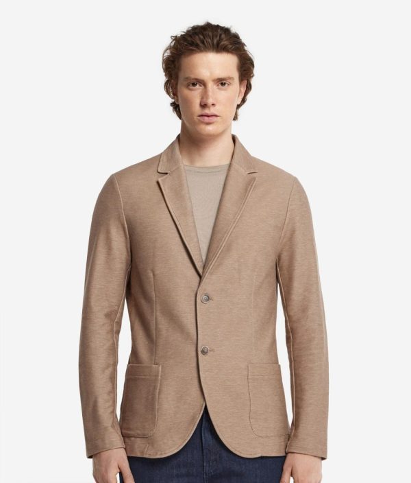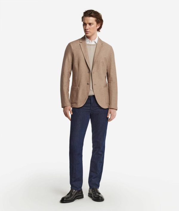 Casual e contemporanea, questa giacca in jersey di cotone è ideale per un look dinamico e ricercato. Con un rever classico, un’abbottonatura centrale e comode tasche sul fondo, unisce stile e versatilità. Un taschino a filetto posto all’interno completa il design con un tocco pratico e sofisticato.