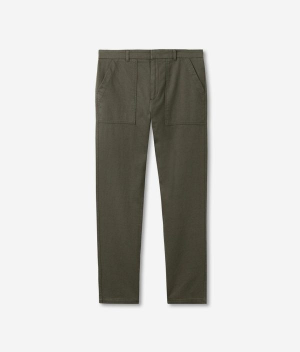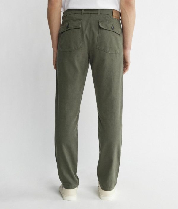 •Tasche ampie sul davanti e tasca applicata con aletta e bottone sul dietro