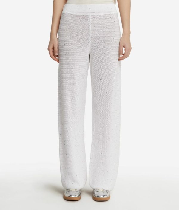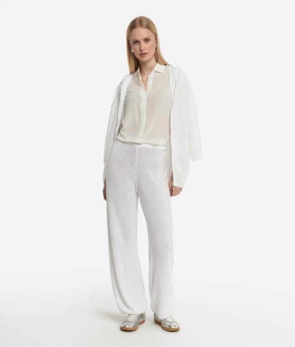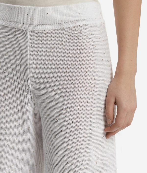 Materiali estivi e volumi morbidi esaltano lo stile di questo pantalone palazzo in lino e cotone. Ad impreziosire il capo un raffinato filato con micro paillettes che dona luce ed eleganza. La vita elasticizzata assicura una vestibilità perfetta, mentre il taglio ampio e fluido esalta la silhouette con leggerezza.