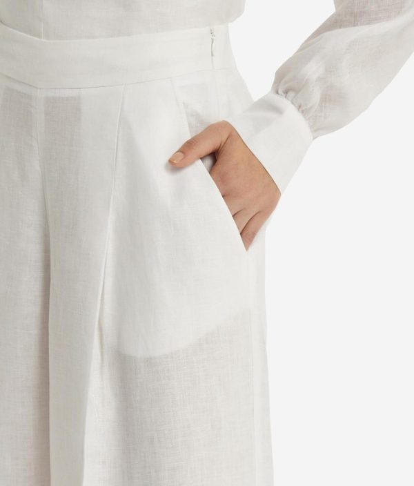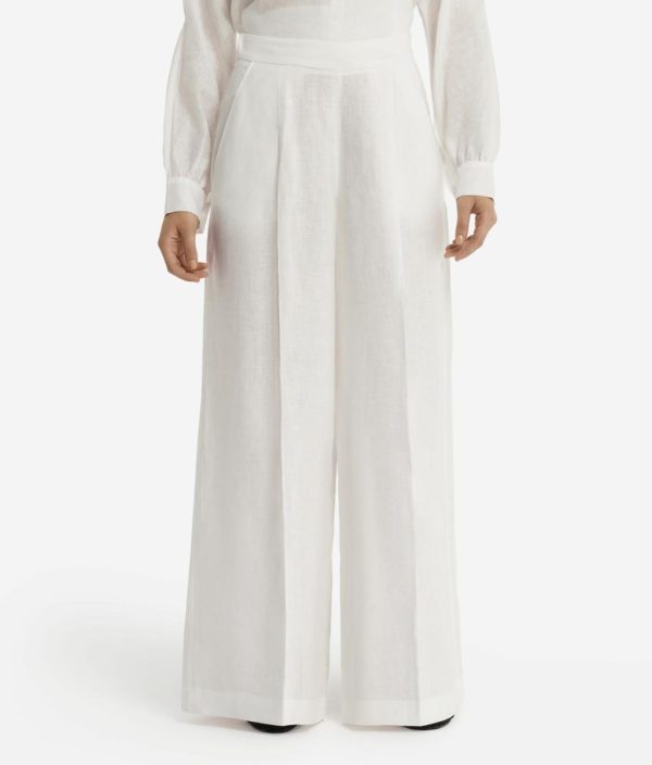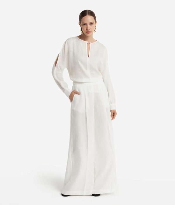 Stile rilassato e dettagli raffinati definiscono l’allure contemporanea di questo pantalone palazzo in tessuto di lino. Il taglio ampio, valorizzato da morbide pieghe frontali, dona un tocco sartoriale alla silhouette fluida che scivola con leggerezza lungo la gamba. Il cinturino con elastico sul retro assicura praticità, mentre la zip invisibile laterale mantiene l’essenzialità di un design minimal e sofisticato.