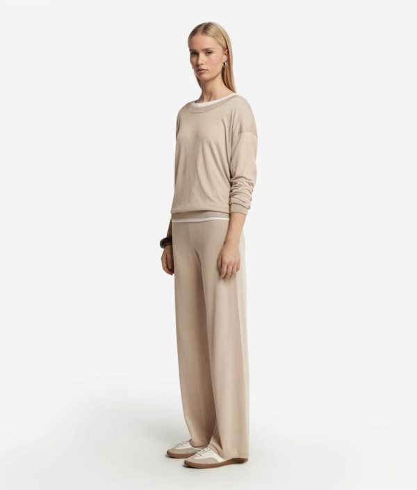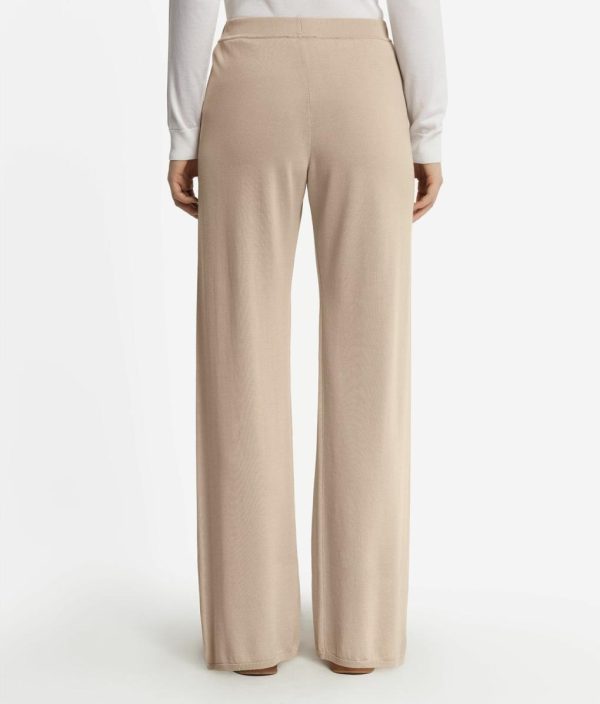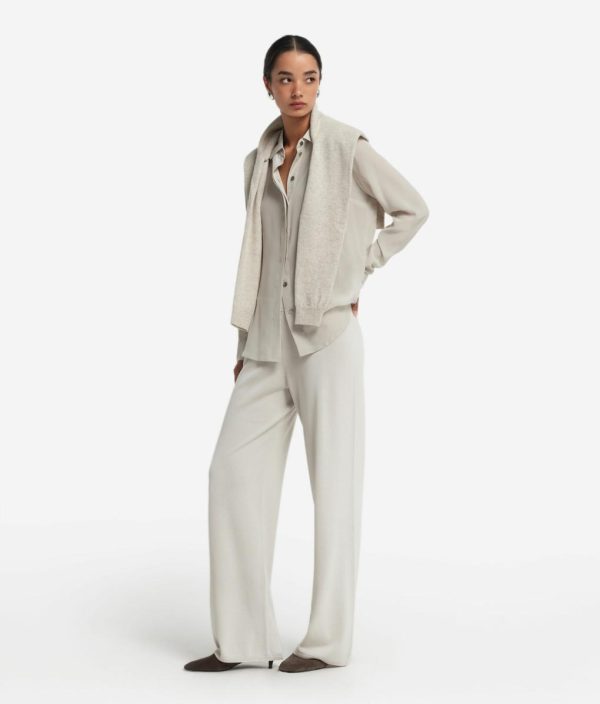 Il pregio della seta e del cotone interpreta le forme di ispirazione retrò dei classici pantaloni a palazzo. La texture dolce e scorrevole offre volumi generosi dalla vestibilità svasata al fondo e propone un modello femminile e sofisticato, facilmente interpretabile.