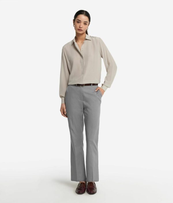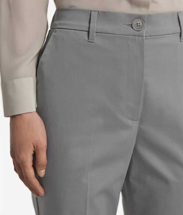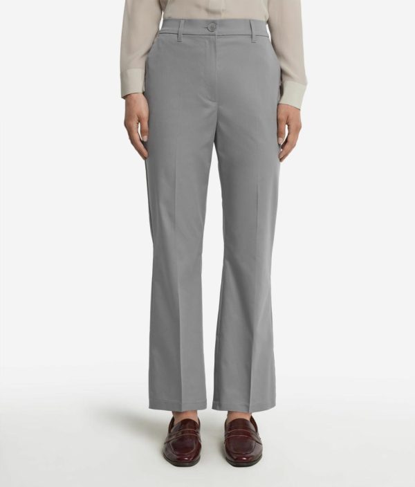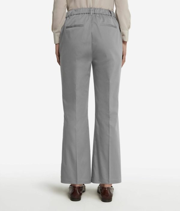 Il gusto casual si fonde con linee essenziali in questo pantalone a trombetta in cotone elasticizzato. Il cinturino posteriore e le tasche a filetto arricchiscono il capo donando un tocco raffinato al design. Con vestibilità slim e lunghezza alla caviglia, è ideale per diversi outfit, unendo stile e funzionalità.