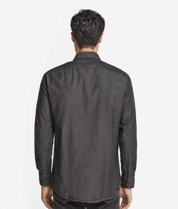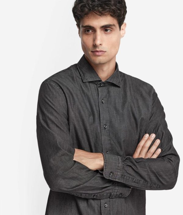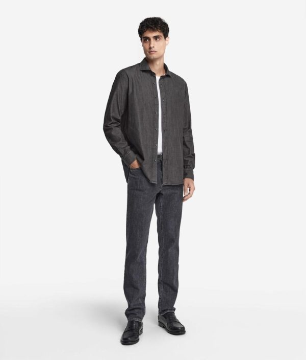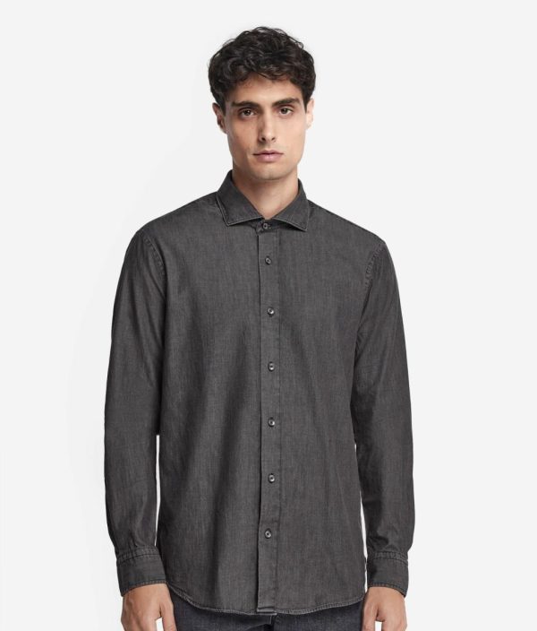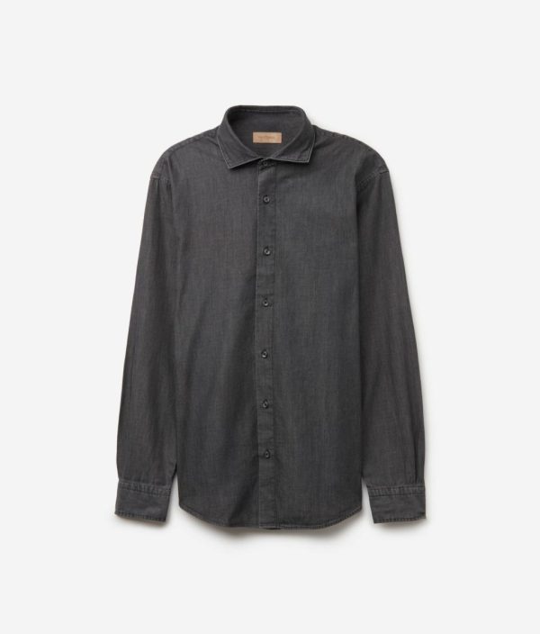 Realizzata in jeans di cotone, questa camicia rappresenta un capo essenziale per il guardaroba che unisce la qualità allo stile. Il design presenta un classico collo alla francese e un’allacciatura centrale con bottoni. Grazie alla sua vestibilità regolare, non ha sagomature accentuate e veste senza aderire particolarmente. Classica e versatile, si adatta a ogni occasione, donando un tocco di raffinatezza senza tempo ad ogni look.