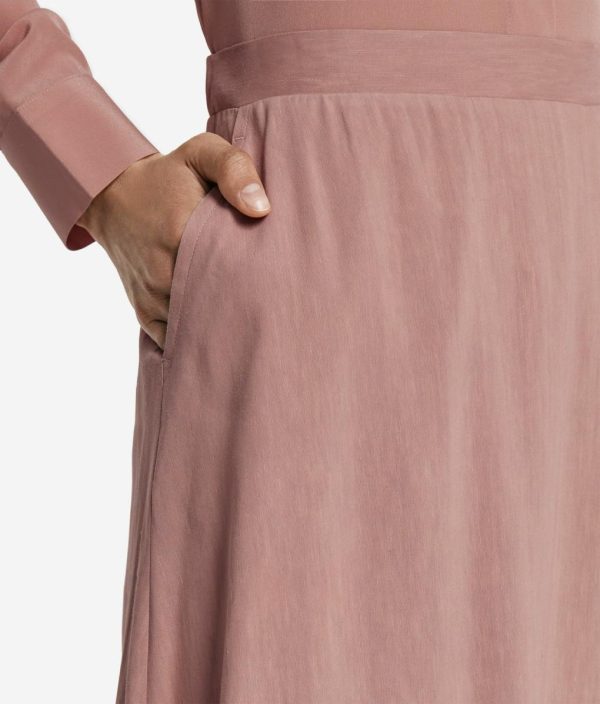 Realizzata in lino e viscosa, questa gonna longuette a ruota, è l’alleato imprescindibile nel guardaroba di ogni donna. Il cinturino elastico sul retro e le tasche all’americana offrono un perfetto equilibrio tra eleganza e praticità, ideale per completare look sia casual che eleganti.