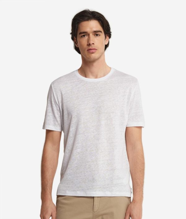 T-shirt girocollo a maniche corte nel nuovo leggerissimo jersey in lino particolarmente fresco e asciutto, è una proposta ideale per la stagione estiva. Comoda e versatile è facile da proporre in abbinamento ad uno stile più informale
