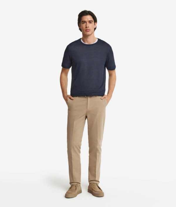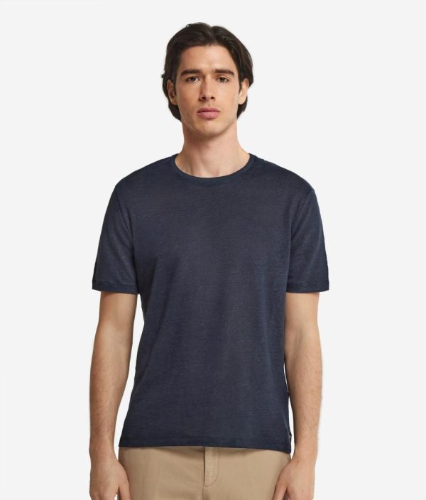 T-shirt girocollo a maniche corte nel nuovo leggerissimo jersey in lino particolarmente fresco e asciutto, è una proposta ideale per la stagione estiva. Comoda e versatile è facile da proporre in abbinamento ad uno stile più informale